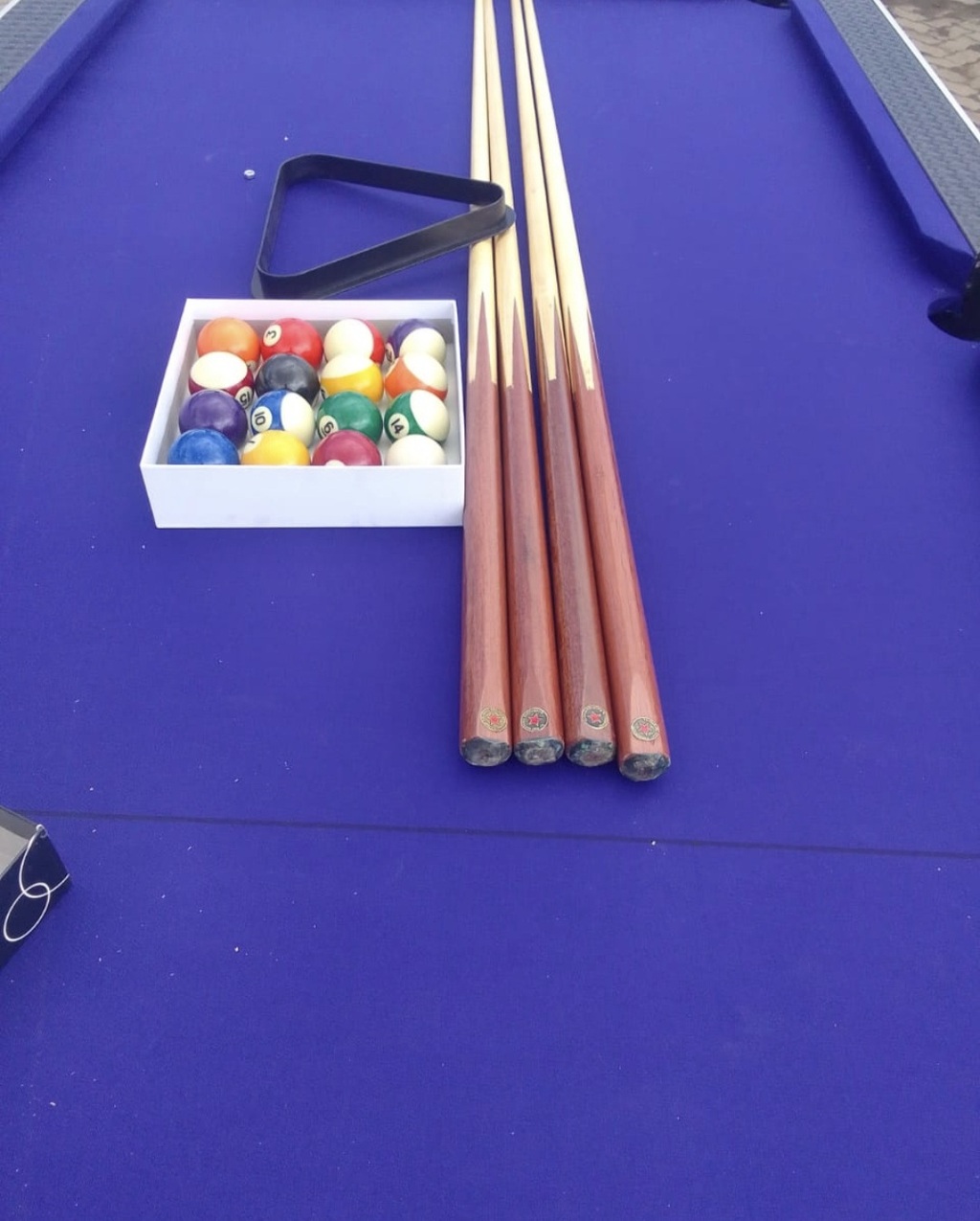 cue sticks (pool sticks) , Pool balls set , triangle , pool chalks, pool tips, rubber, white ball, office pool tables, commercial pool tables, customized pool tables, token machines, 20b0b machines, straight 6 machines, billiards, snookers, speed cloth Pool table repair and meintenance services